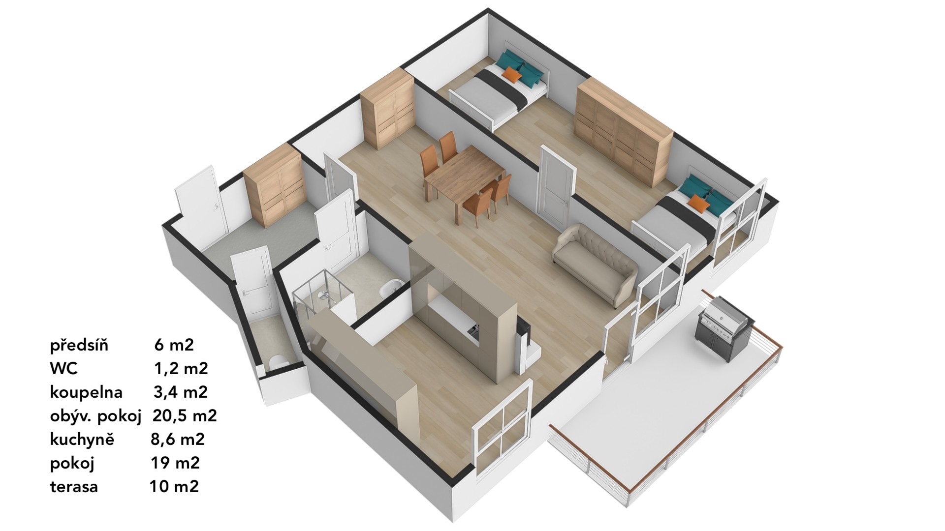 Byt se nachází ve cihlovém domě ve velmi dobrém stavu a nabízí příjemné prostředí pro život. Můžete se těšit na vlastní terasu o ploše cca 10 m², která je skvělým místem pro relaxaci či setkání s přáteli. K bytu náleží i garážové místo č. 33, které je k dispozici za měsíční poplatek 2300 Kč + poplatky 186 Kč.