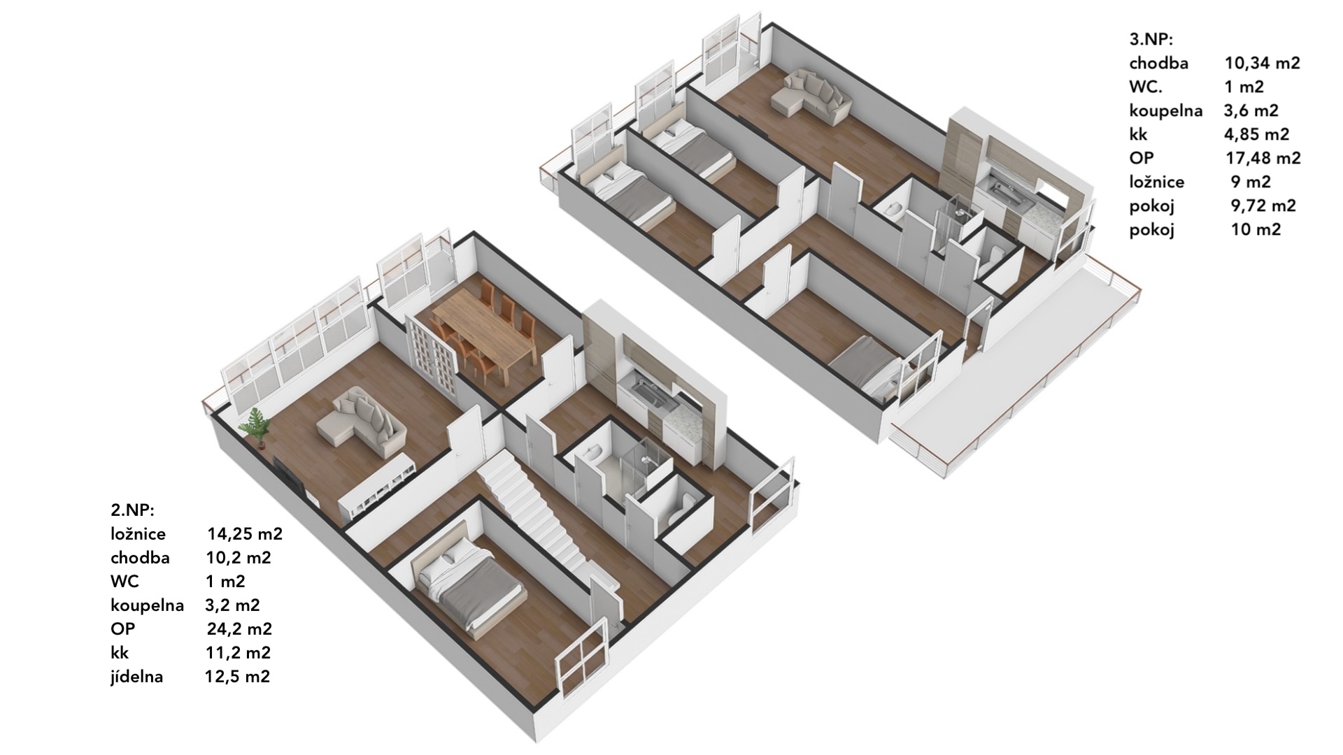 K nemovitosti patří také dvě garáže a tři terasy s celkovou plochou 21 m².