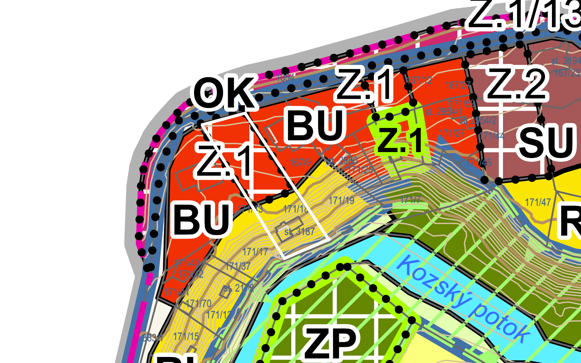 Část pozemku parc. č. 167/8 o výměře 758 m2 spadá dle ÚP do ploch BU - bydlení všeobecné v rodinných domech. Lze postavit dům s č.p. o 2 NP.